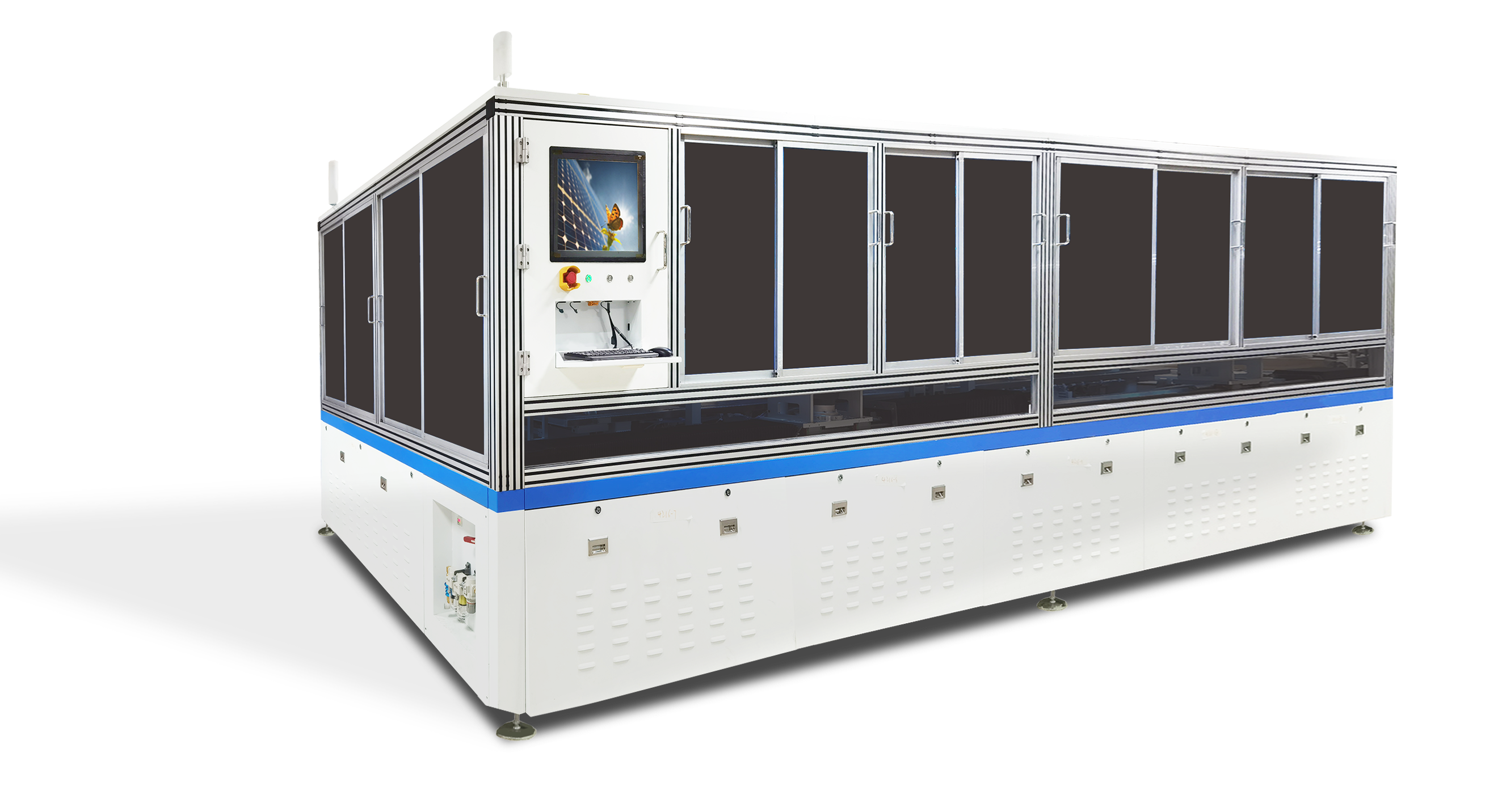 整线自动化兼容性高,适合当前所有组件版型规格产品快速切换,满足电池片尺寸、电池图形、焊带规格、组件版型规格、组件工艺等变化场景需求